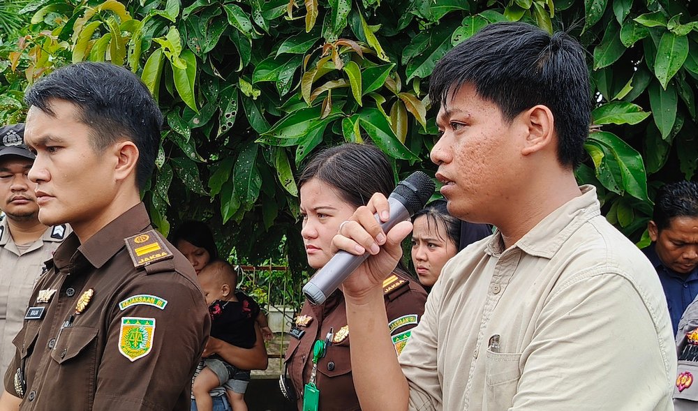 Hal ini sempat memancing emosi massa. Mereka kemudian mendesak agar JPU dan Hakim membuka mata hatinya dalam menangani perkara tersebut.