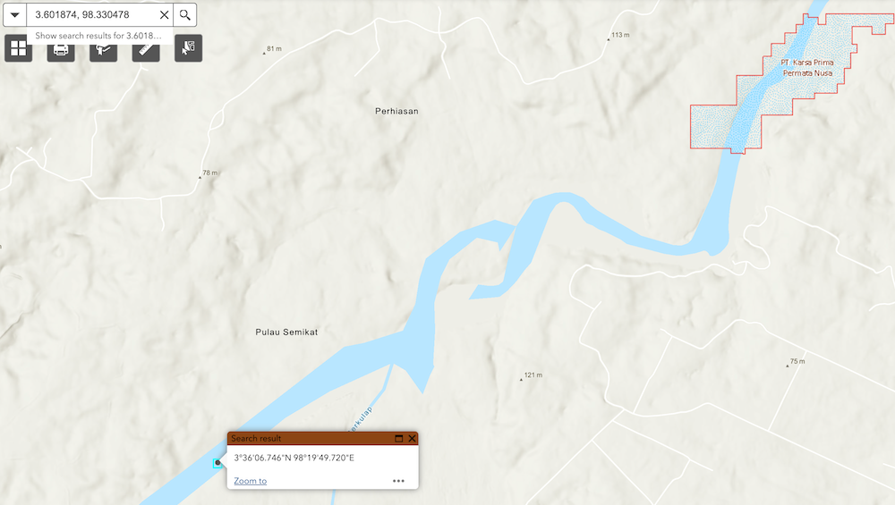 Lokasi galian C yang tak berizin sesuai dengan overlay Geoportal ESDM.