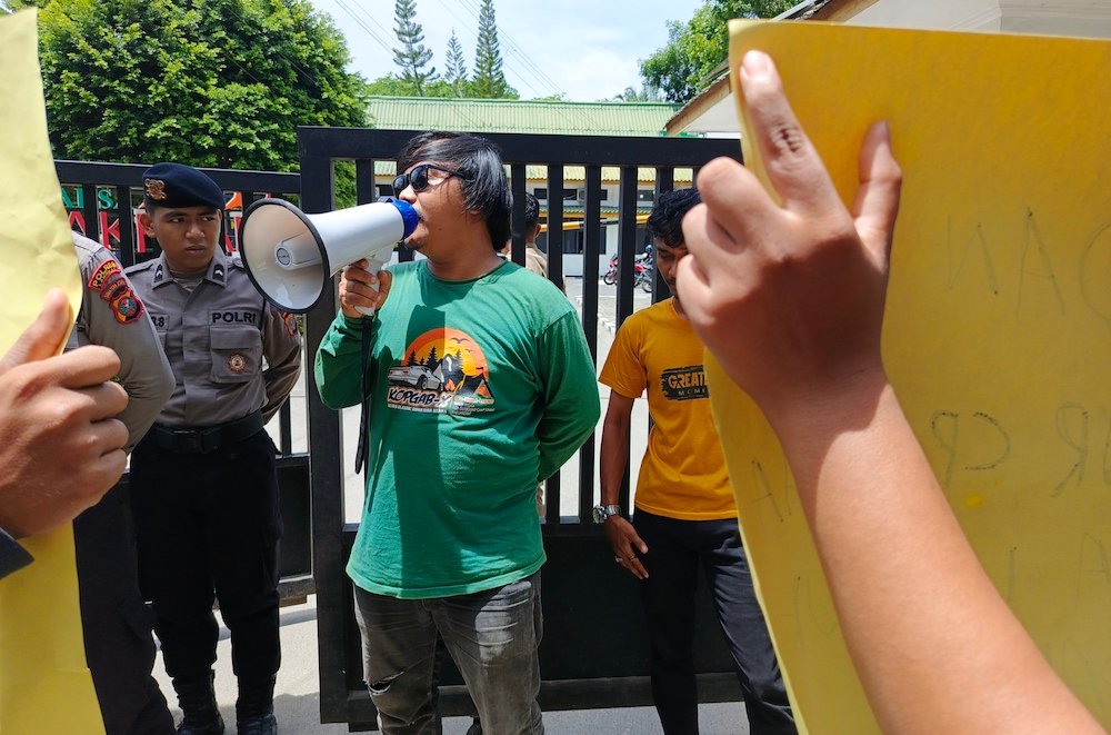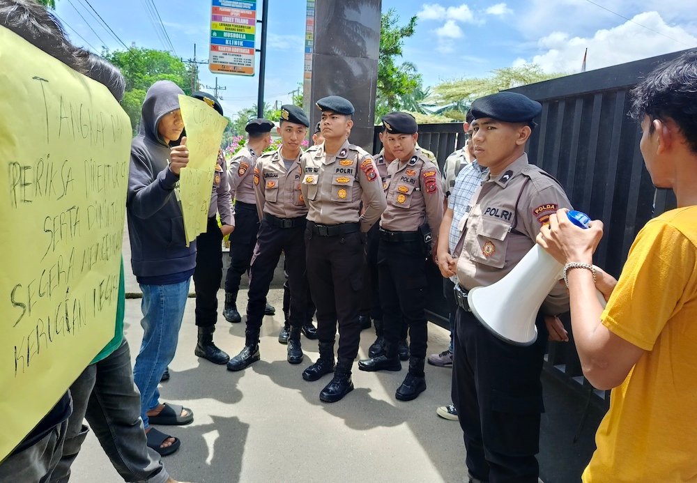 Ironisnya, massa yang menyampaikan orasi di sana terkesan tak menguasai materi dari tuntutannya. Mereka tak bisa merincikan berapa pagu proyek yang mereka tuding bermasalah tersebut.